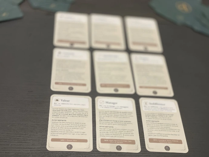 Poser une carte sur la table, c'est poser un mot devant soi, un mot qu'on n'a pas choisi, qu'on n'aurait peut-être pas utilisé spontanément. Ce décalage entre ce qu'on attendait et ce qu'on voit oblige à regarder la situation autrement. Certains mots confortent ce qu'on savait déjà. D'autres forcent un autre angle. C'est précisément cet autre angle qui est utile, de la précision lexicologique mise en mouvement.